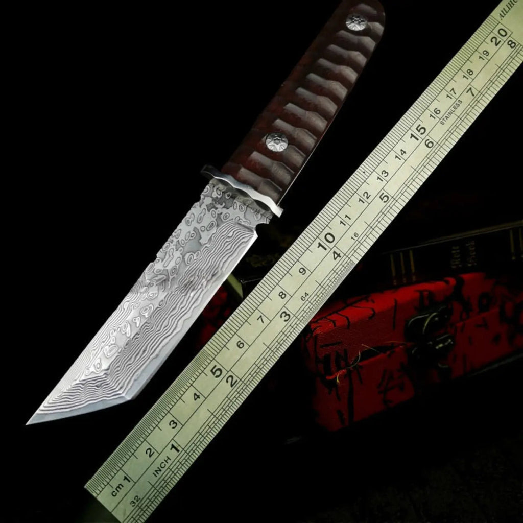 Material Lâmina: Aço DamascoMaterial Punho: Madeira NobreEspessura Lâmina: 4mm