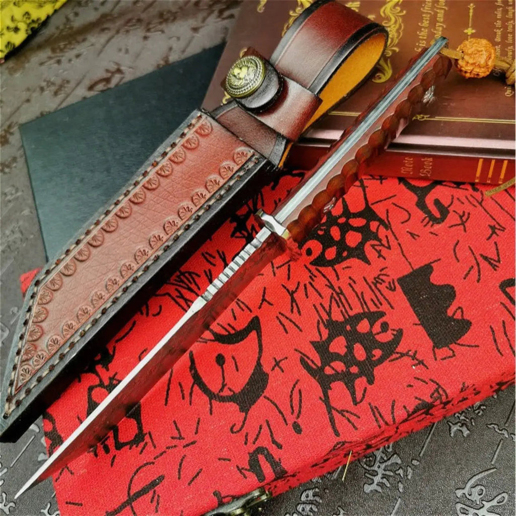Tamanho Total: 21,5cmTamanho Lâmina: 9,8cmBainha: Couro Costurado à Mão